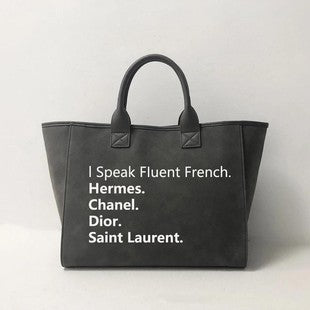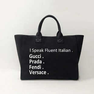 Hurry, the "I Speak Fluent Italian" bag is selling fast. This stylish tote is the perfect everyday bag that compliments any look.