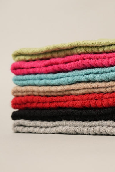 LOVE Knitted Beanie Hat Rolled brim with faux fur pom Solid color beanie hat * One size with a good stretch to fit (7.5" Width, 11" Height)