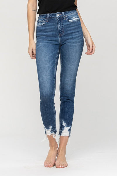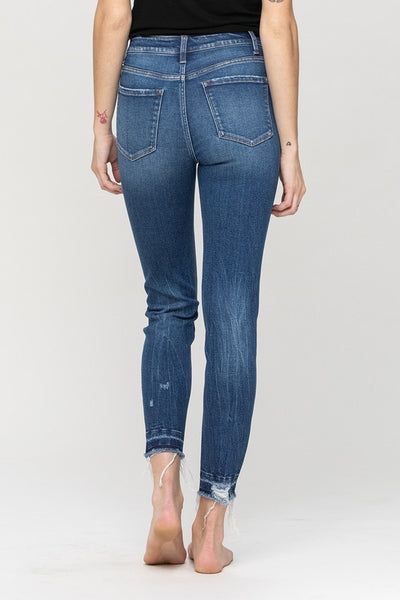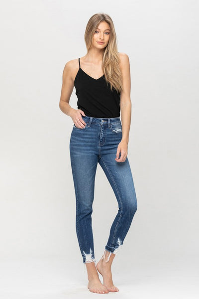 The "High Rise Released Distressed Hem Crop Skinny Jeans" are a trendy addition to your denim collection. Featuring a high-rise waist, they provide a flattering fit that accentuates your curves while offering a modern silhouette. The distressed hem adds a touch of edginess and makes them a stylish choice for casual outings, allowing you to showcase your unique fashion sense with confidence.