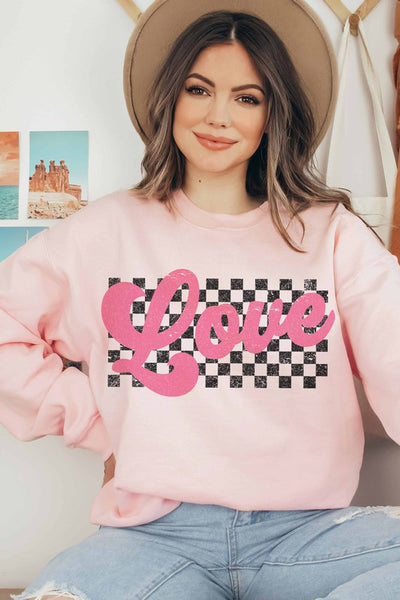 RETRO LOVE CHECKER GRAPHIC SWEATSHIRT + DESIGNED FOR COMFORT AND STYLE + PREMIUM COTTON + UNISEX SIZING + CLASSIC FIT