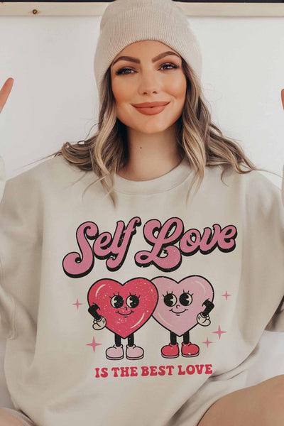 SELF LOVE IS THE BEST LOVE GRAPHIC SWEATSHIRT PLUS SIZE + DESIGNED FOR COMFORT AND STYLE + PREMIUM COTTON + UNISEX SIZING + CLASSIC FIT