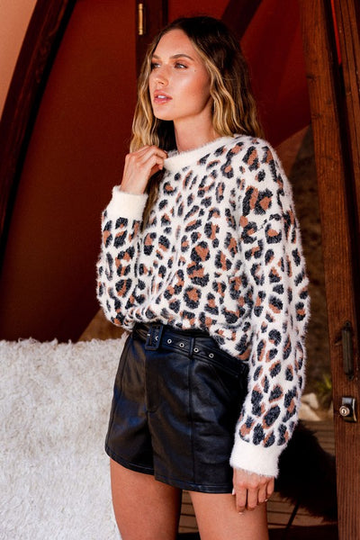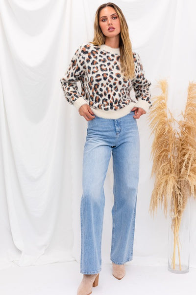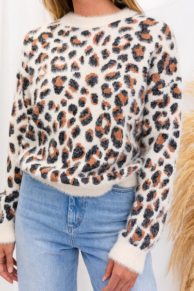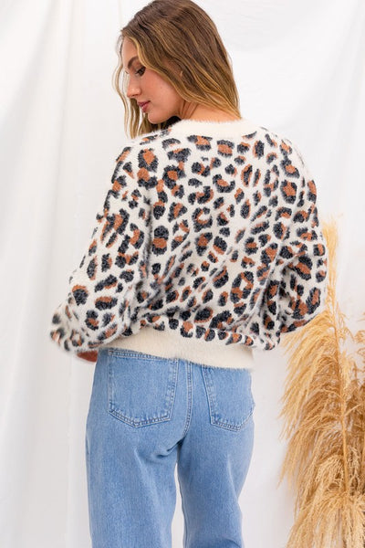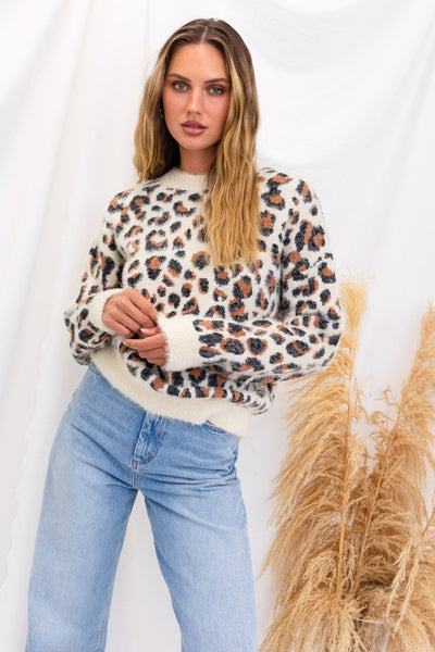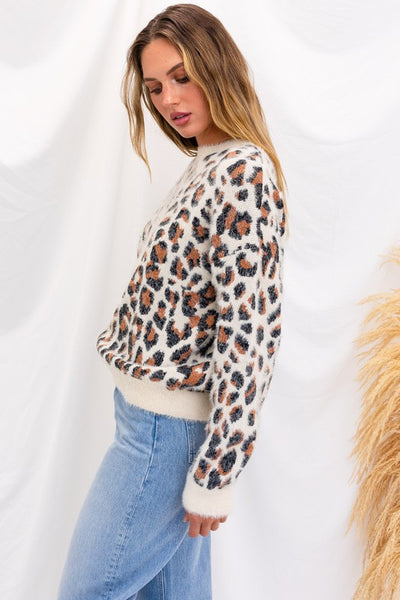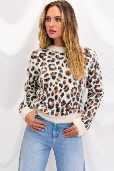 Elevate your cozy-chic game with our Fuzzy Leopard Pullover Sweater. Unleash your wild side while staying warm and stylish in this on-trend piece. Crafted for both comfort and fashion.
