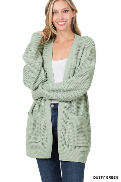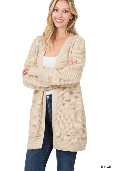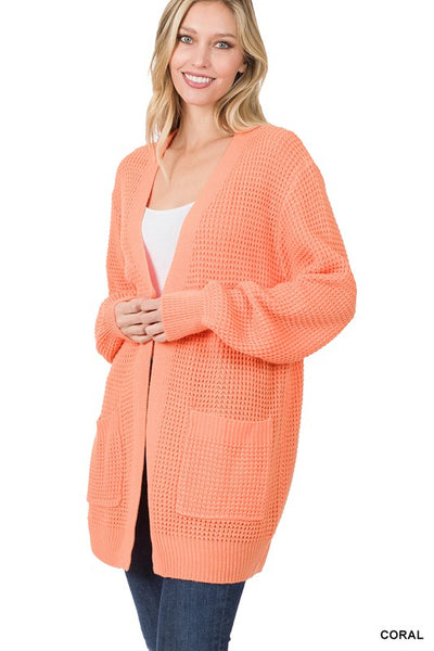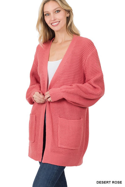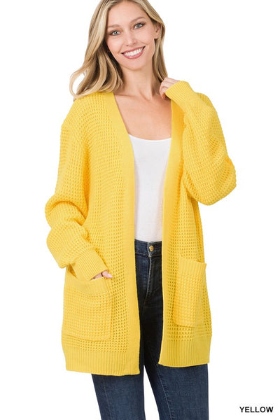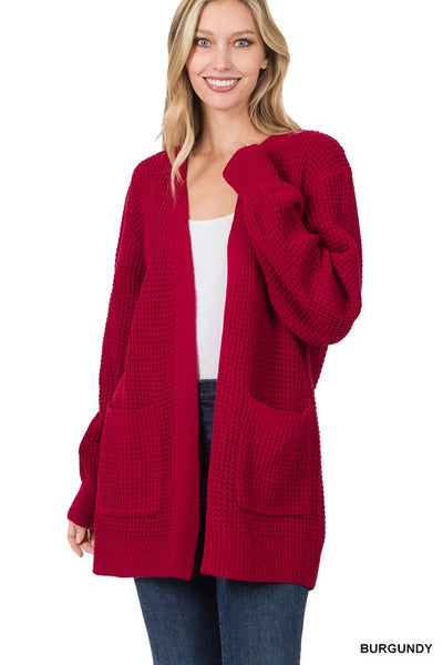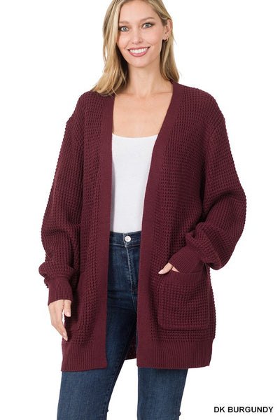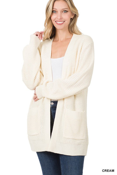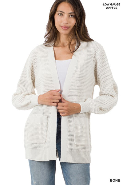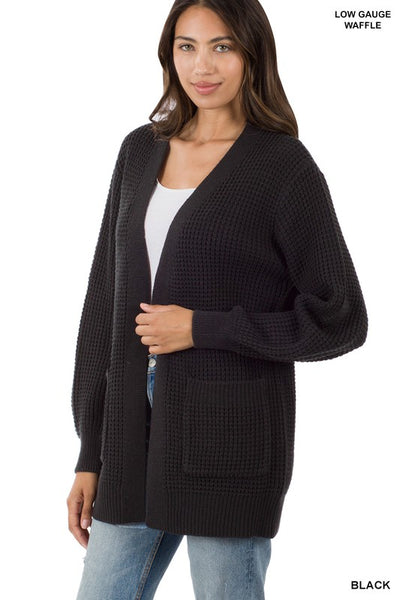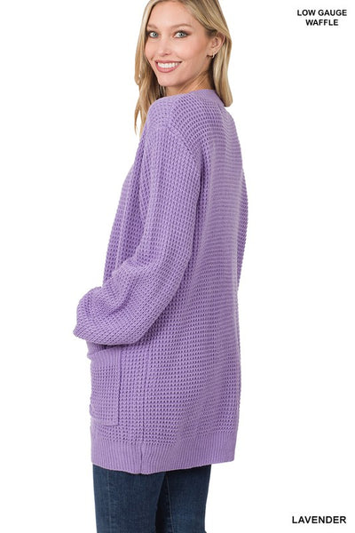The Low Gauge Waffle Open Cardigan Sweater is a versatile and comfortable addition to your fall and winter wardrobe. Its low gauge waffle knit texture offers a cozy and stylish look, perfect for staying warm on cooler days. With its open front design, this cardigan adds a layer of sophistication to your outfits and can be easily paired with various tops and bottoms, making it a go-to choice for both casual and dressier occasions.
