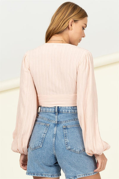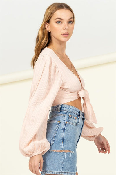 Make a bold statement in the Break the Rule Tie-Front Crop Top. This top exudes confidence and style with its deep-plunged V-neckline that adds a touch of allure to your look. The tie-front bodice not only enhances your curves but also adds a sexy and trendy element to your outfit. With full-length sleeves featuring elastic cuffs, this crop top offers both comfort and a chic appearance.